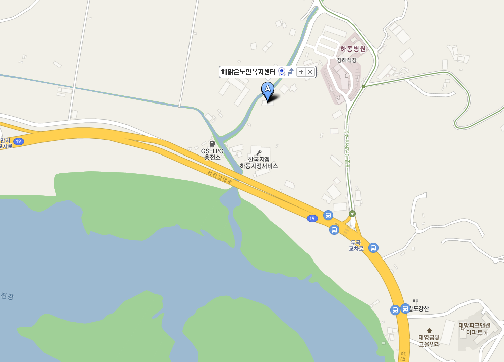 교통편 대중교통 이용 시 하동버스터미널에서 하동읍 두곡리 들어오는 시내버스 타고 들어오시거나 택시를 이용하여 오시면 됩니다. 섬진강사랑의집 옆 건물, 섬진강사랑의집 입구 들어가지 말고 쭉 직진